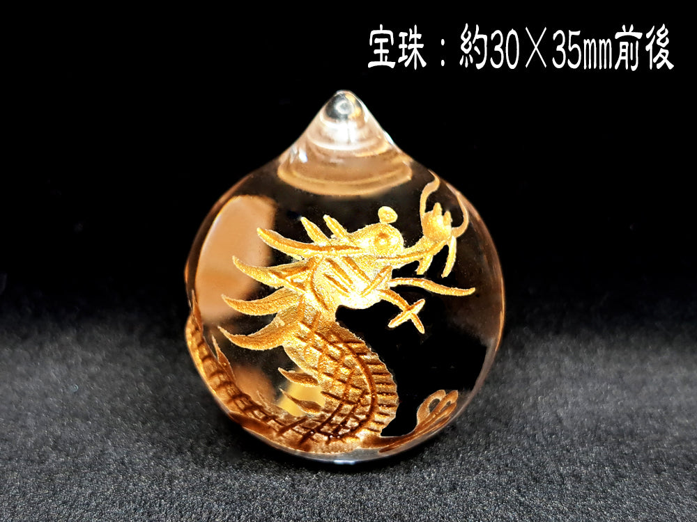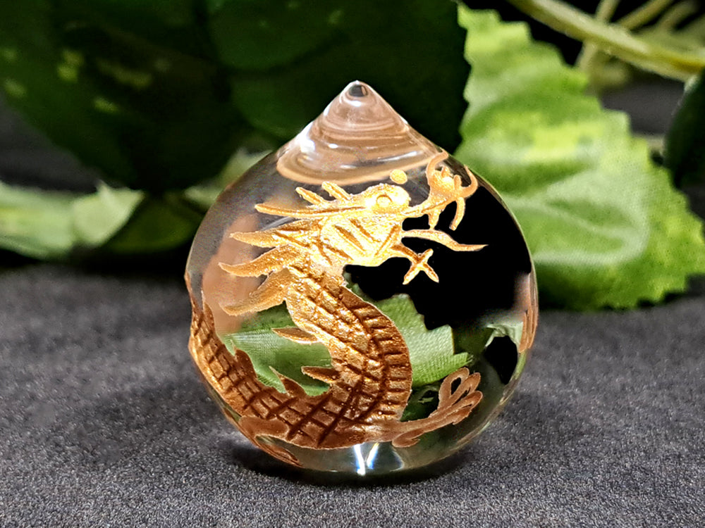 龍(手彫り玉/水晶・青、紫、ピンク色入り)