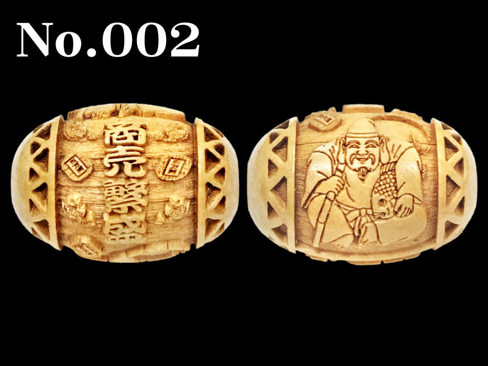 柘植に様々なお守り袋が刻印された、匠の逸品です。