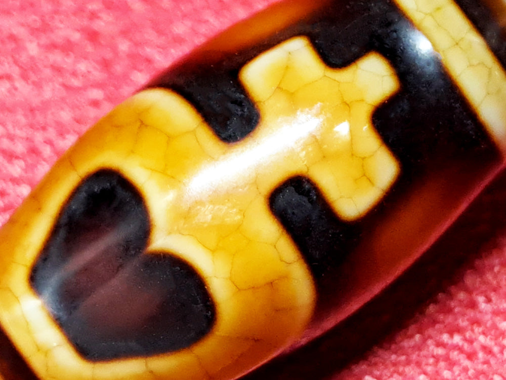 火供天珠は通常の天珠と比べ、長く焼く事で、独特のヒビが入ります。