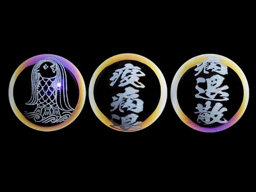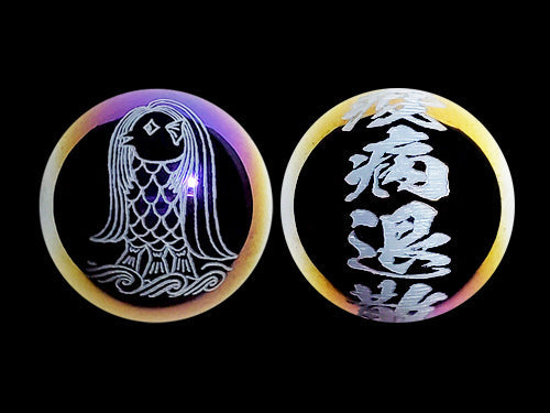 ※アマビエのお姿と疫病退散の文字が一玉に彫られています。