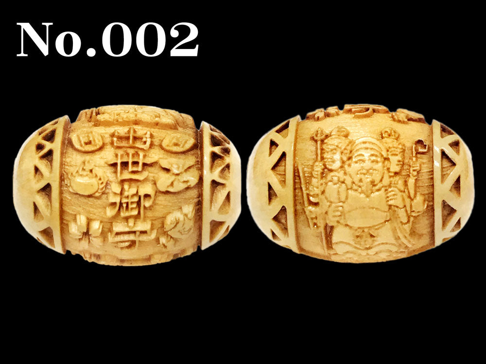 柘植に様々なお守り袋が刻印された、匠の逸品です。