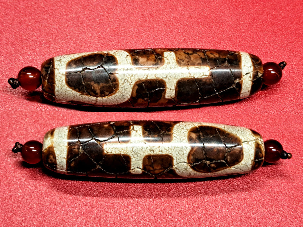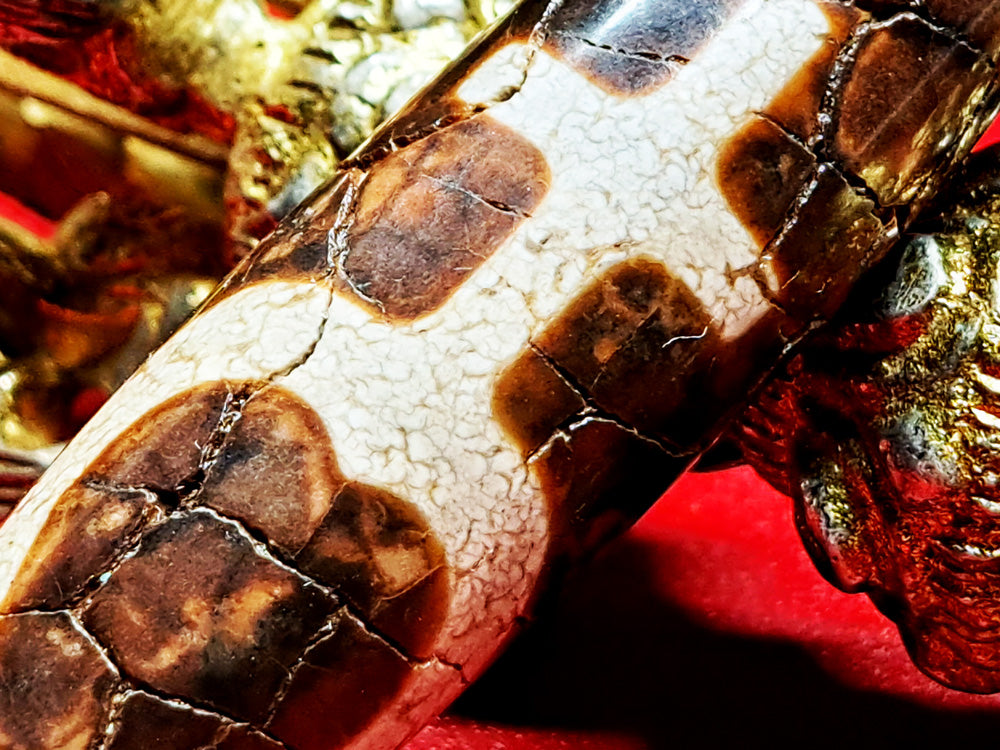 火供天珠は通常の天珠と比べ、長く焼く事で、独特のヒビが入ります。