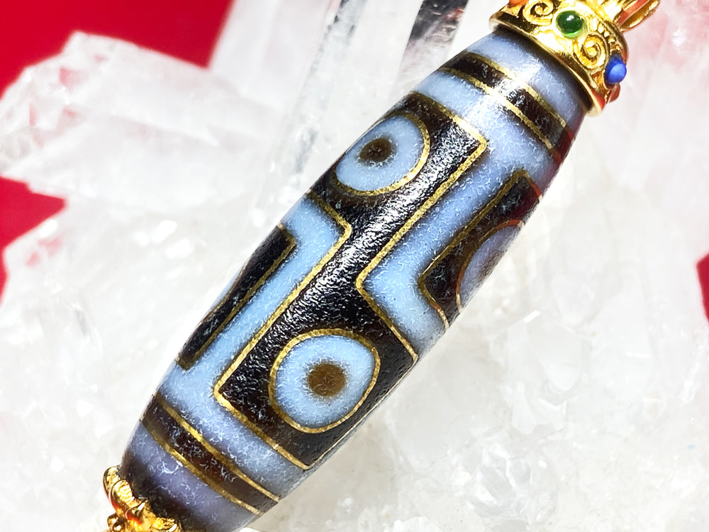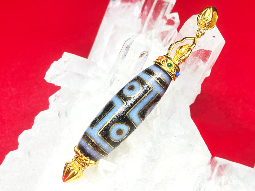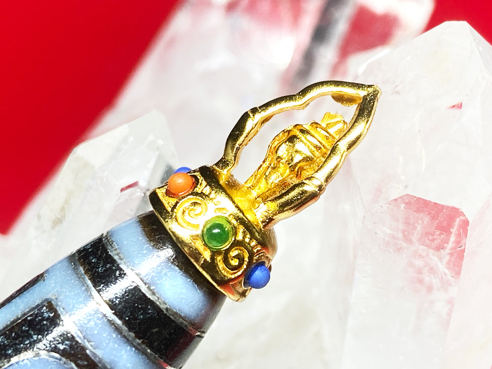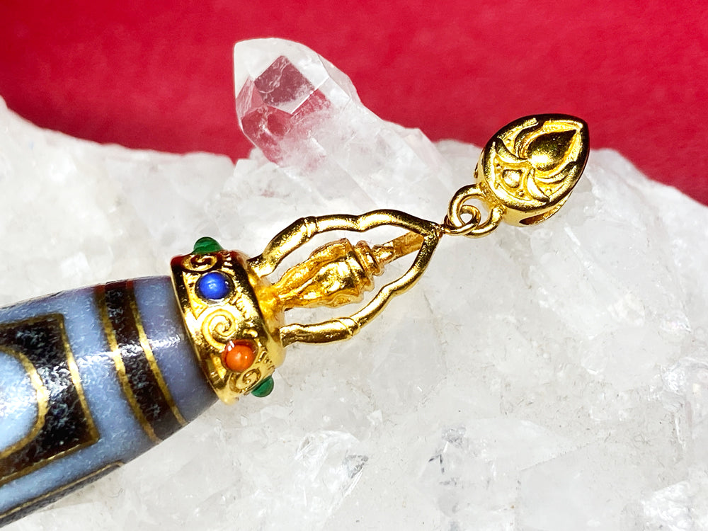 非常に縁起の良い八吉祥の一つ法螺を装飾した天珠です。