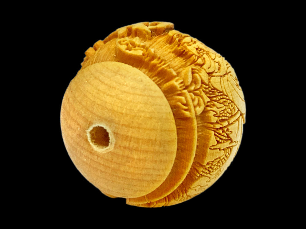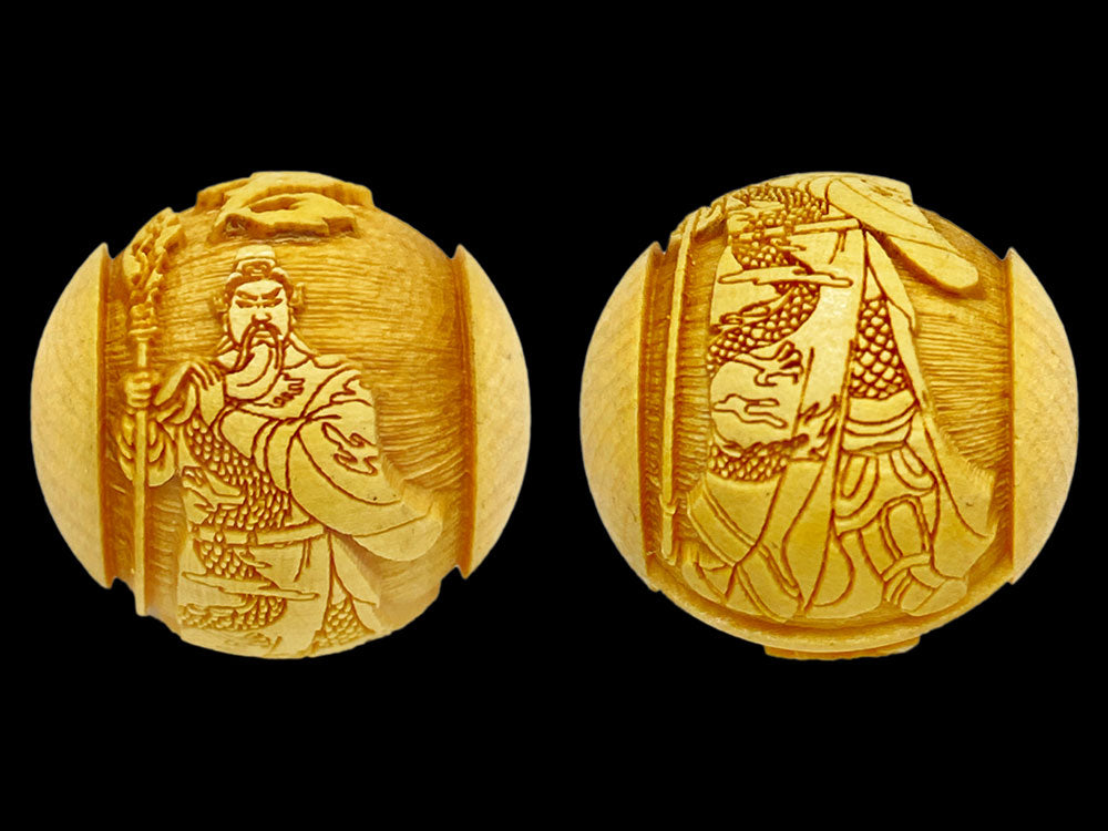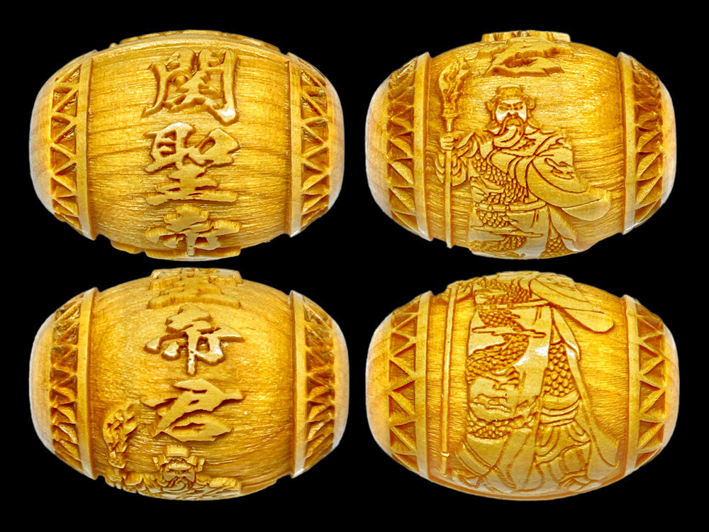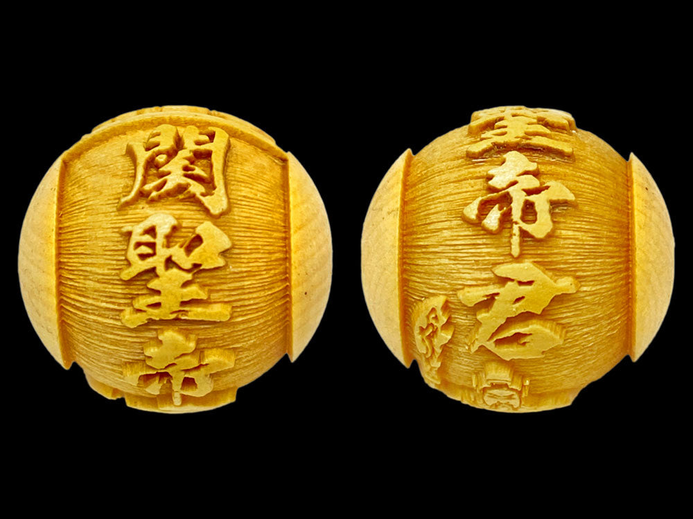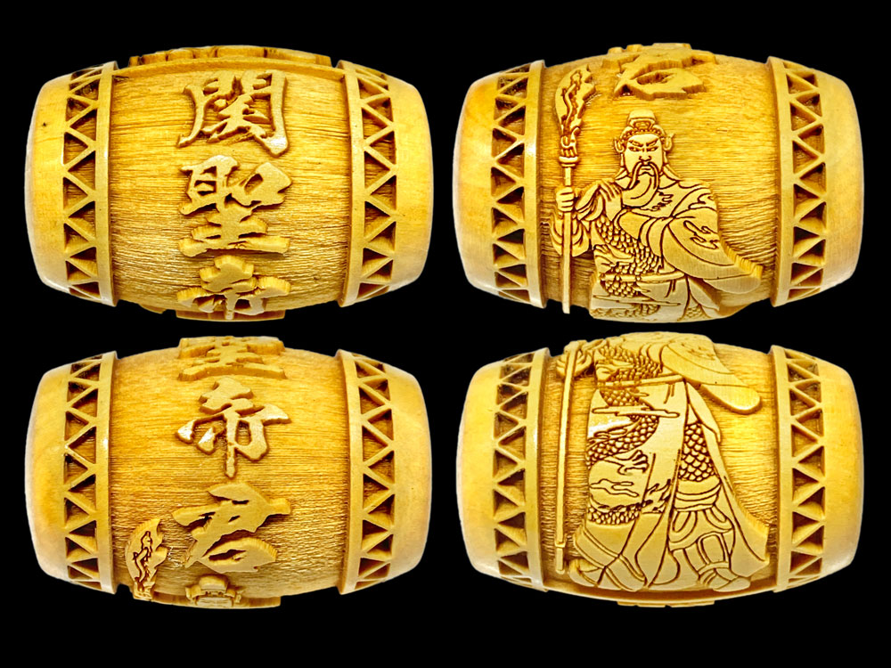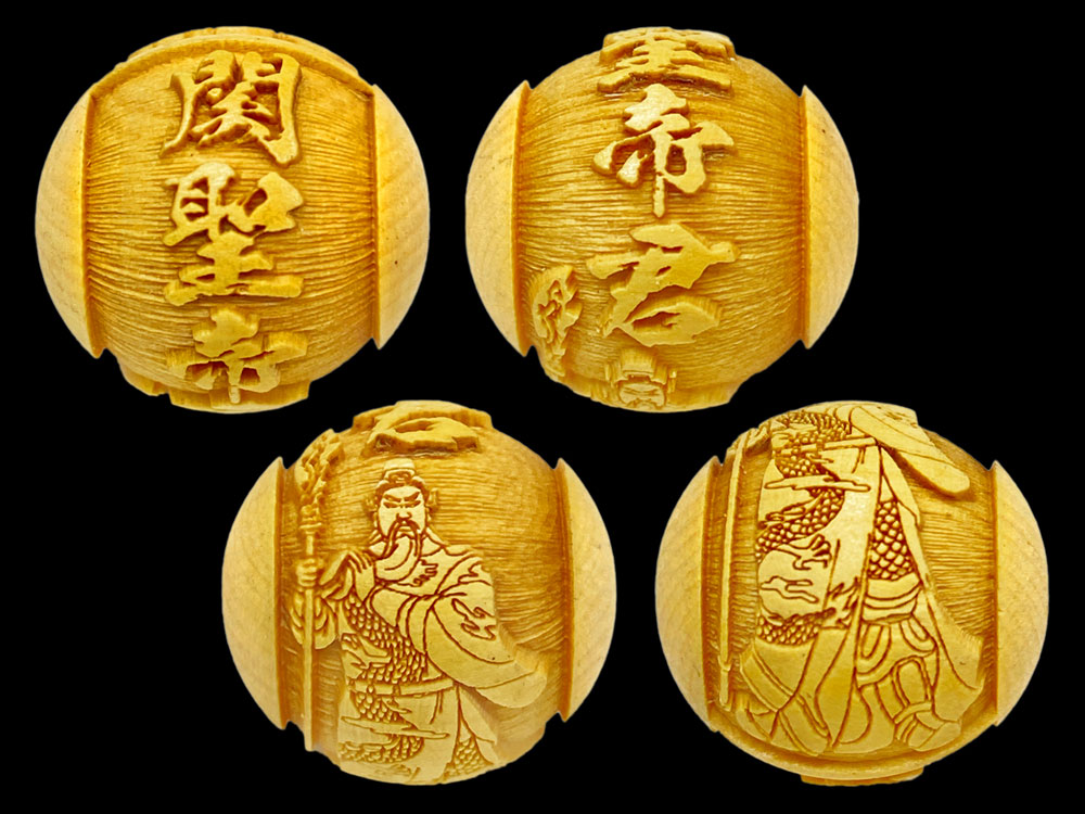 関聖帝君の文字と御姿が柘植玉に一周しております。