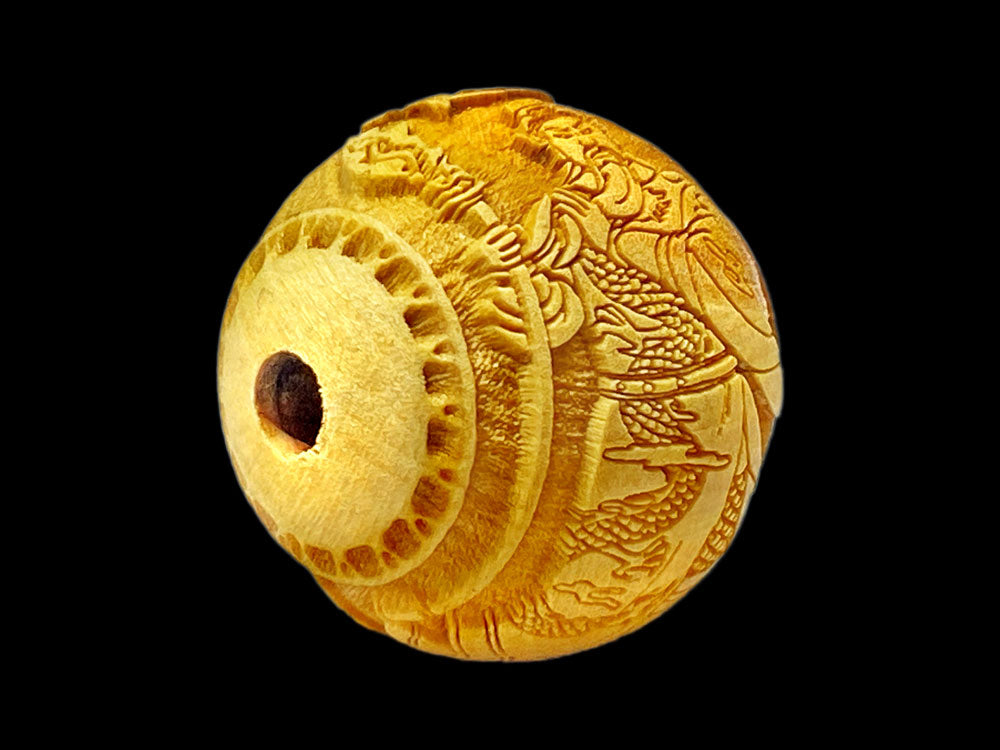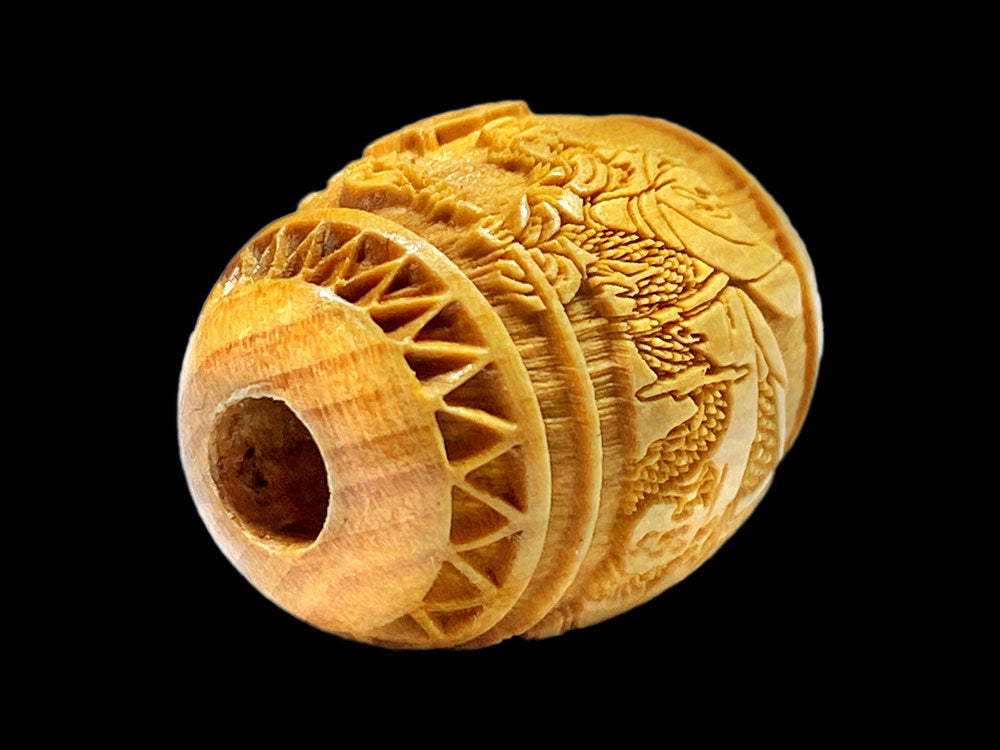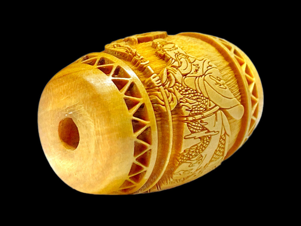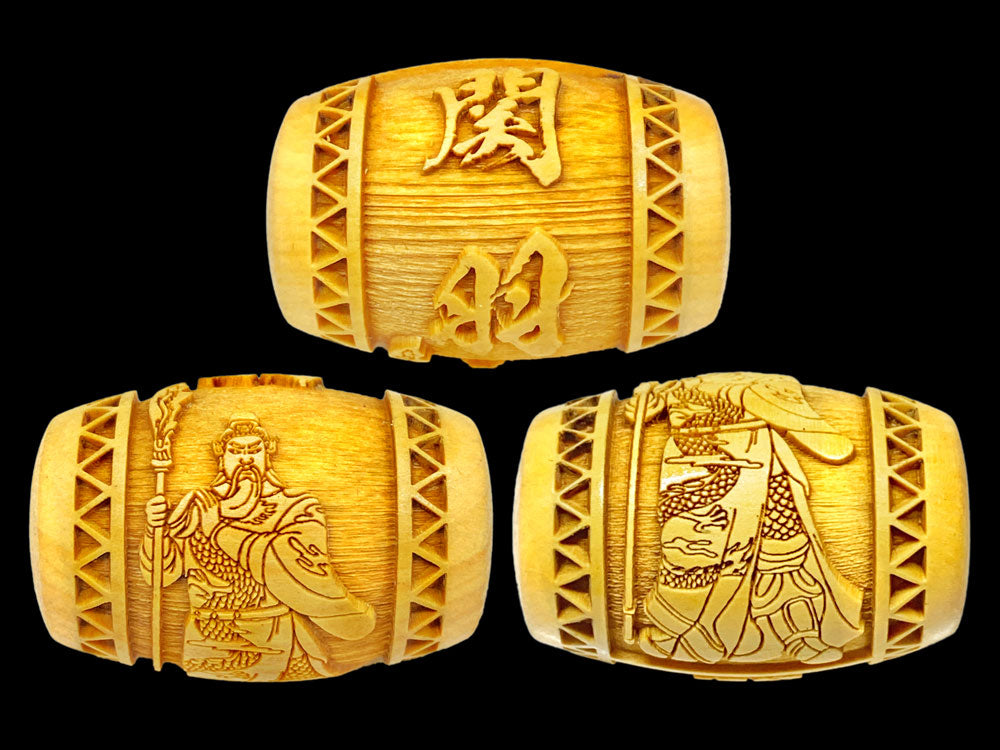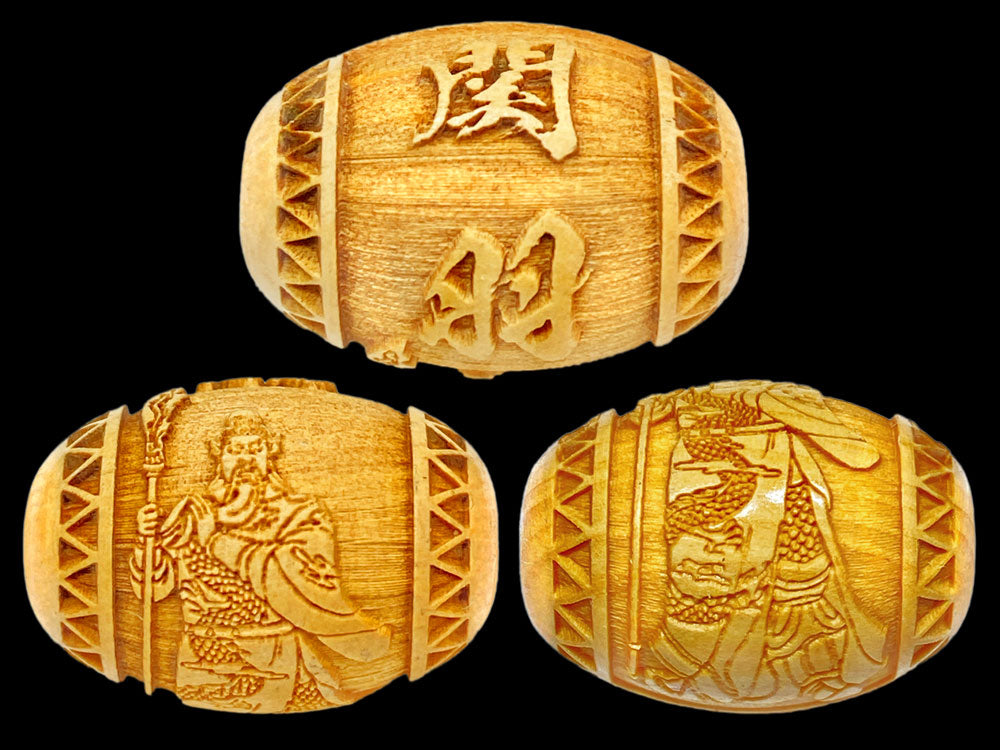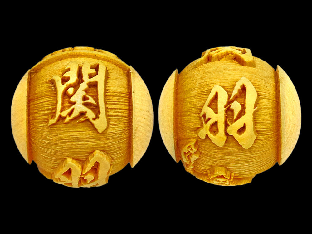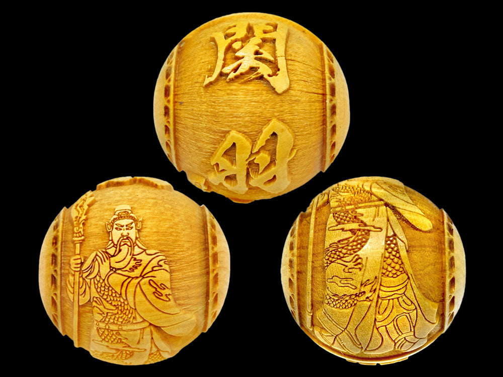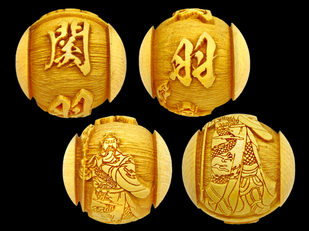 関羽の文字と御姿が柘植玉に一周しております。