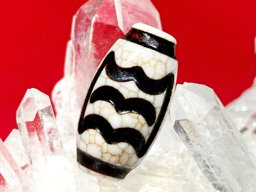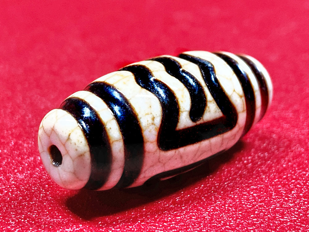 火供天珠は通常の天珠と比べ、長く焼く事で、独特のヒビが入ります。