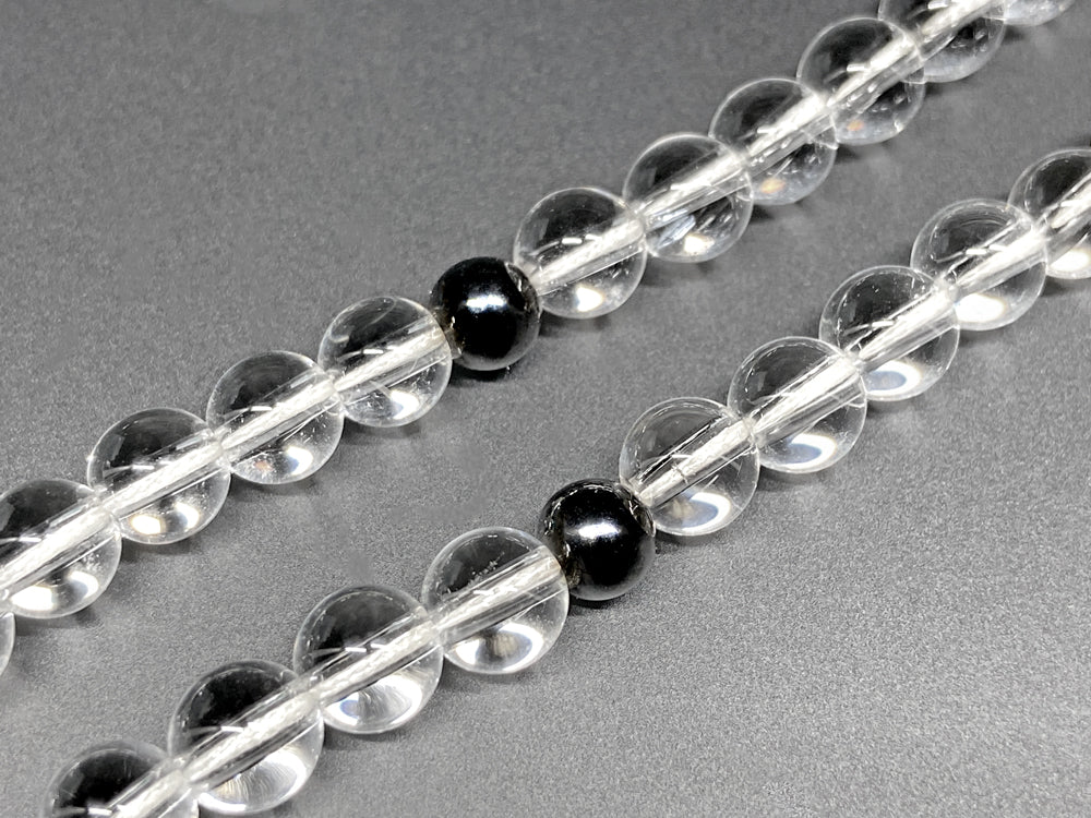 108個の水晶と3個のヘマタイトが連なり、煩悩を浄化し心身の調和と守護をもたらすとされます。