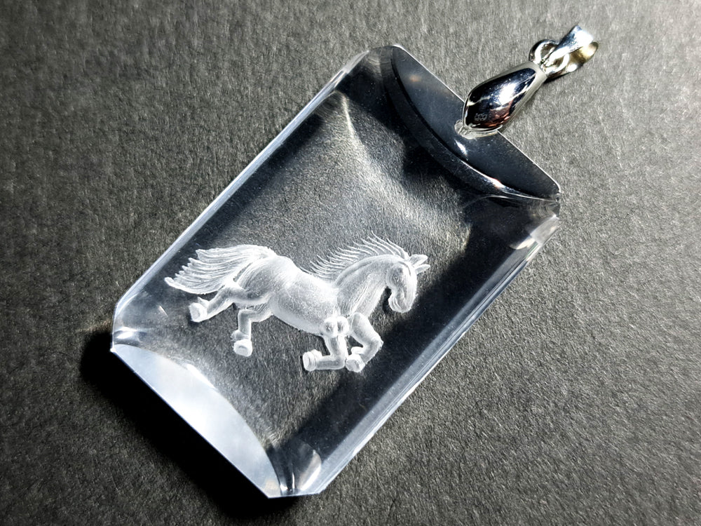 水晶・龍手彫り・台形型(深彫り/金色入り)