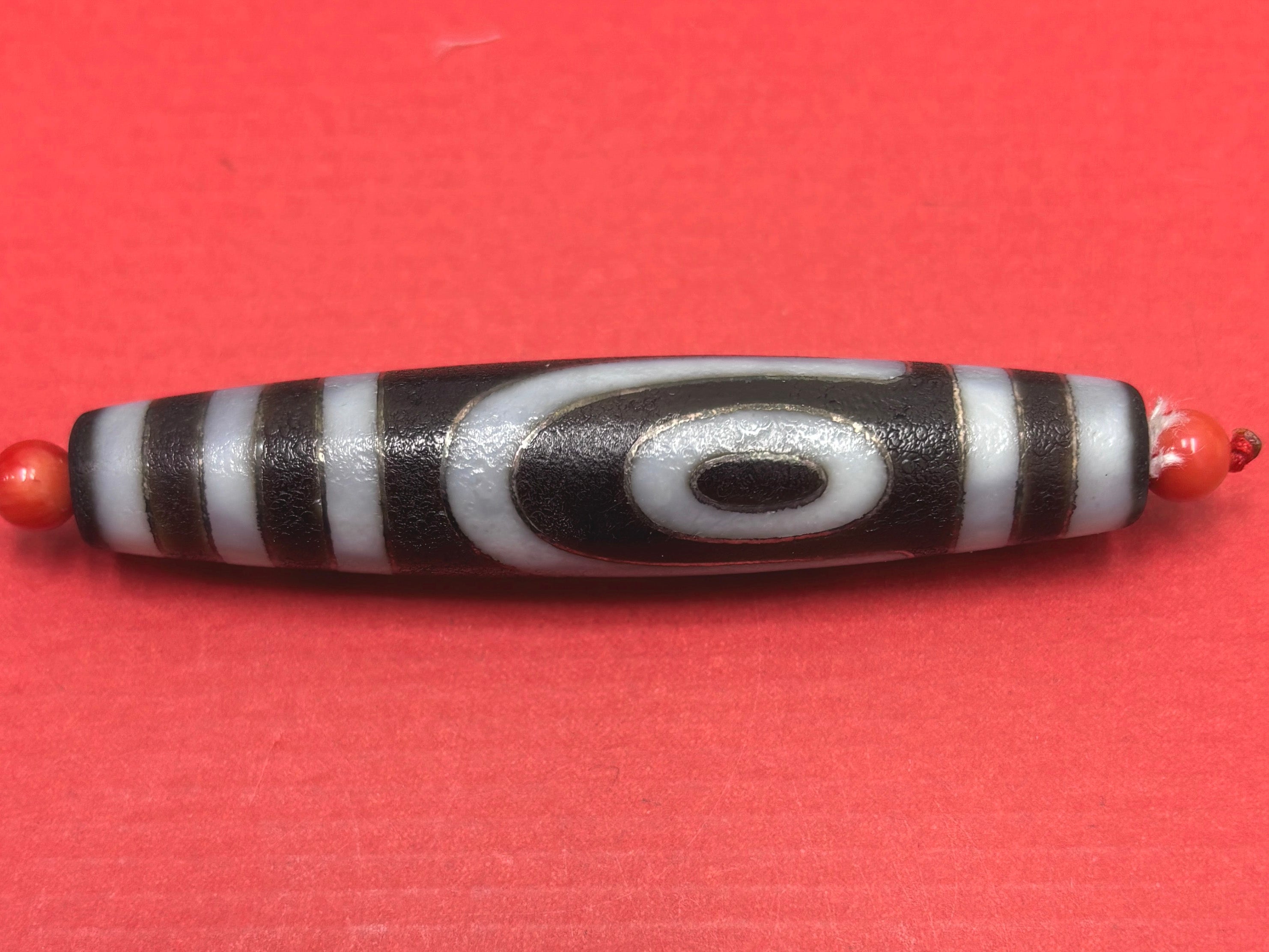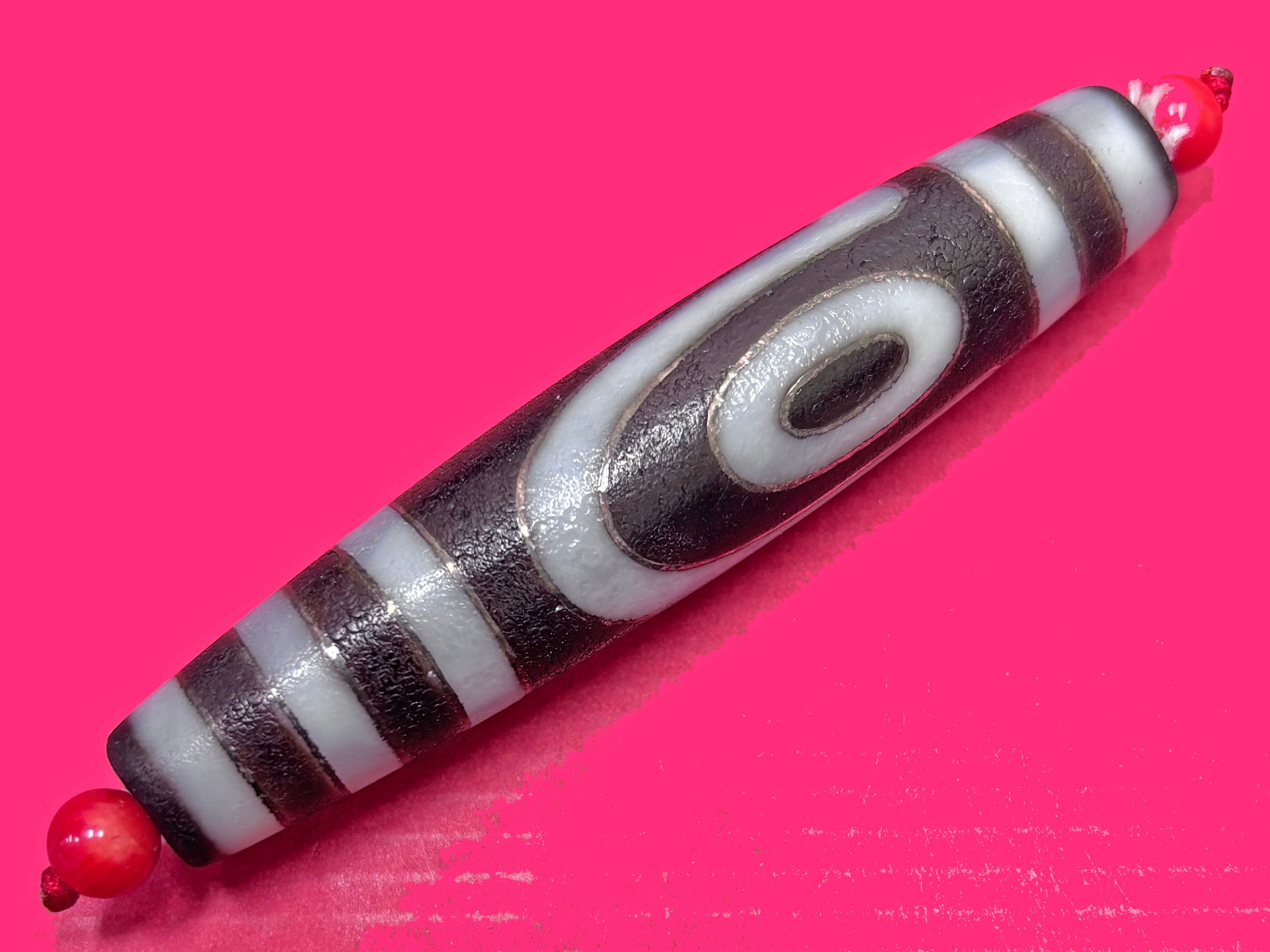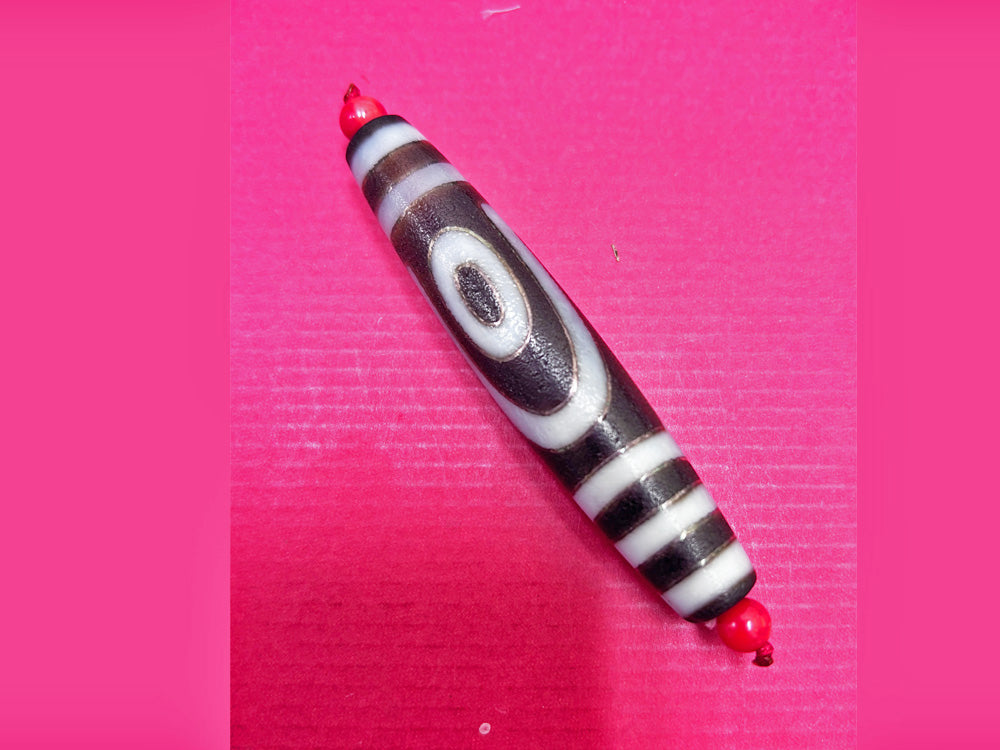パワーも最上級と言われる極上の一品に銀を装飾した、美しい天珠です。