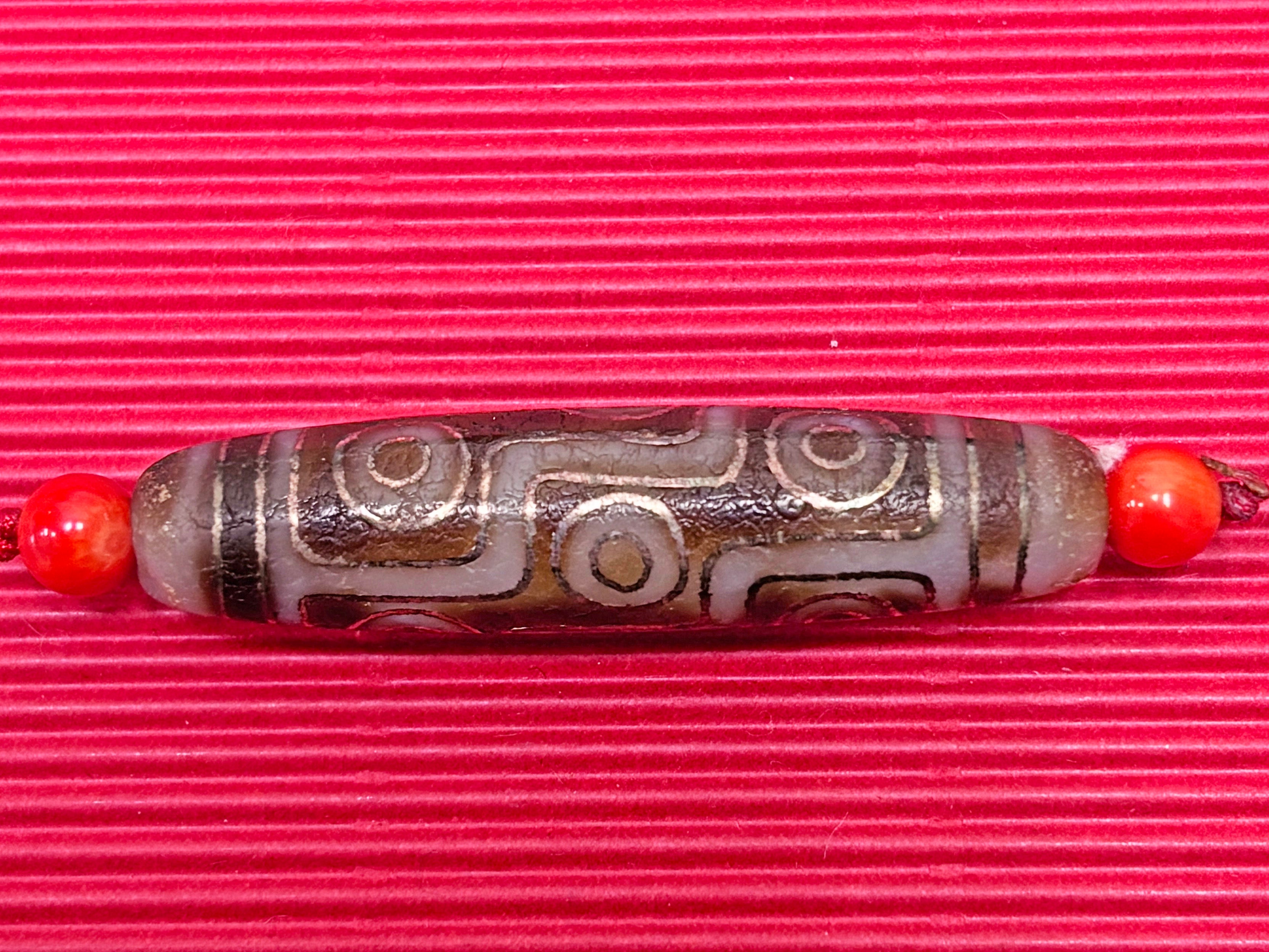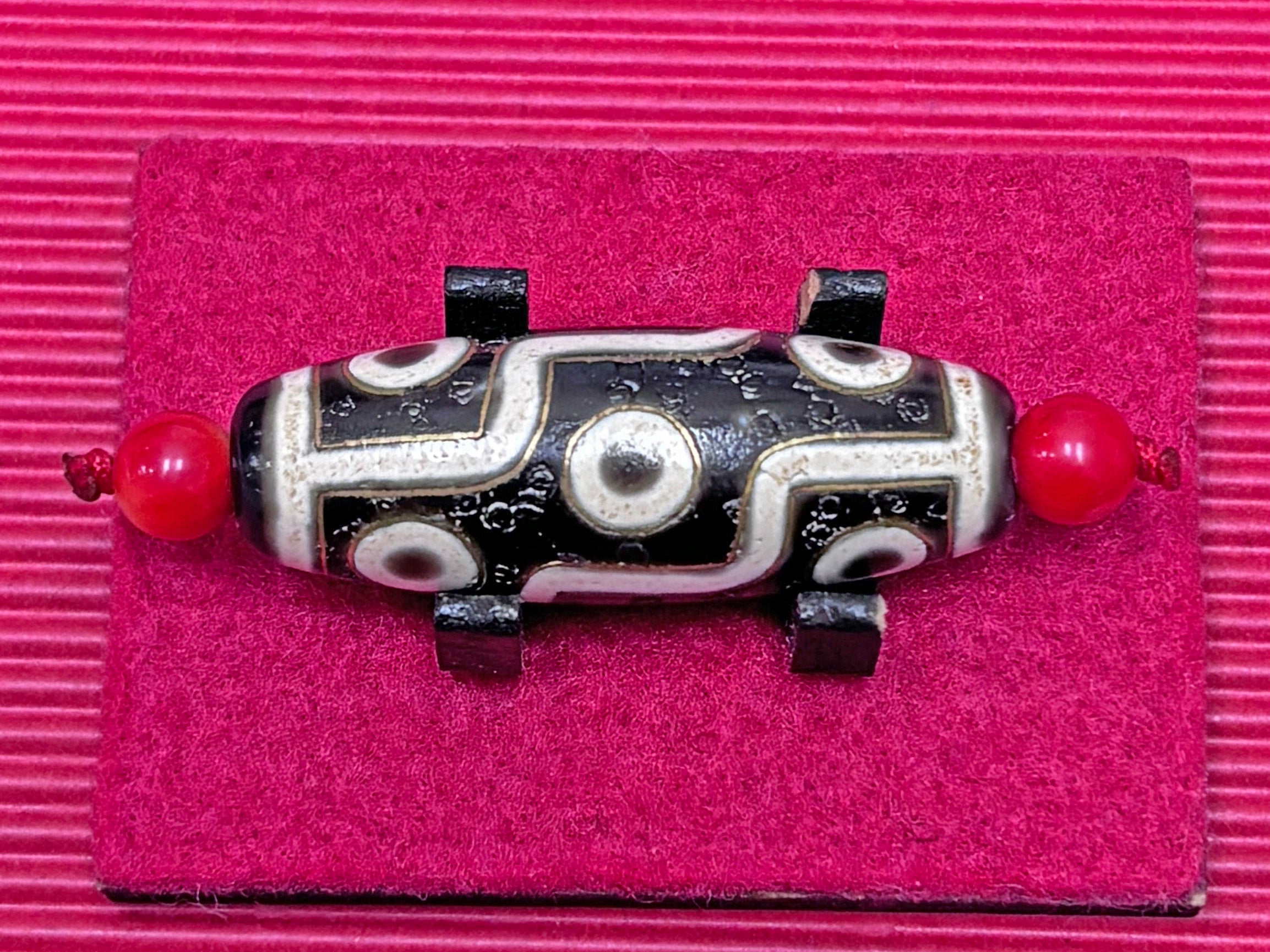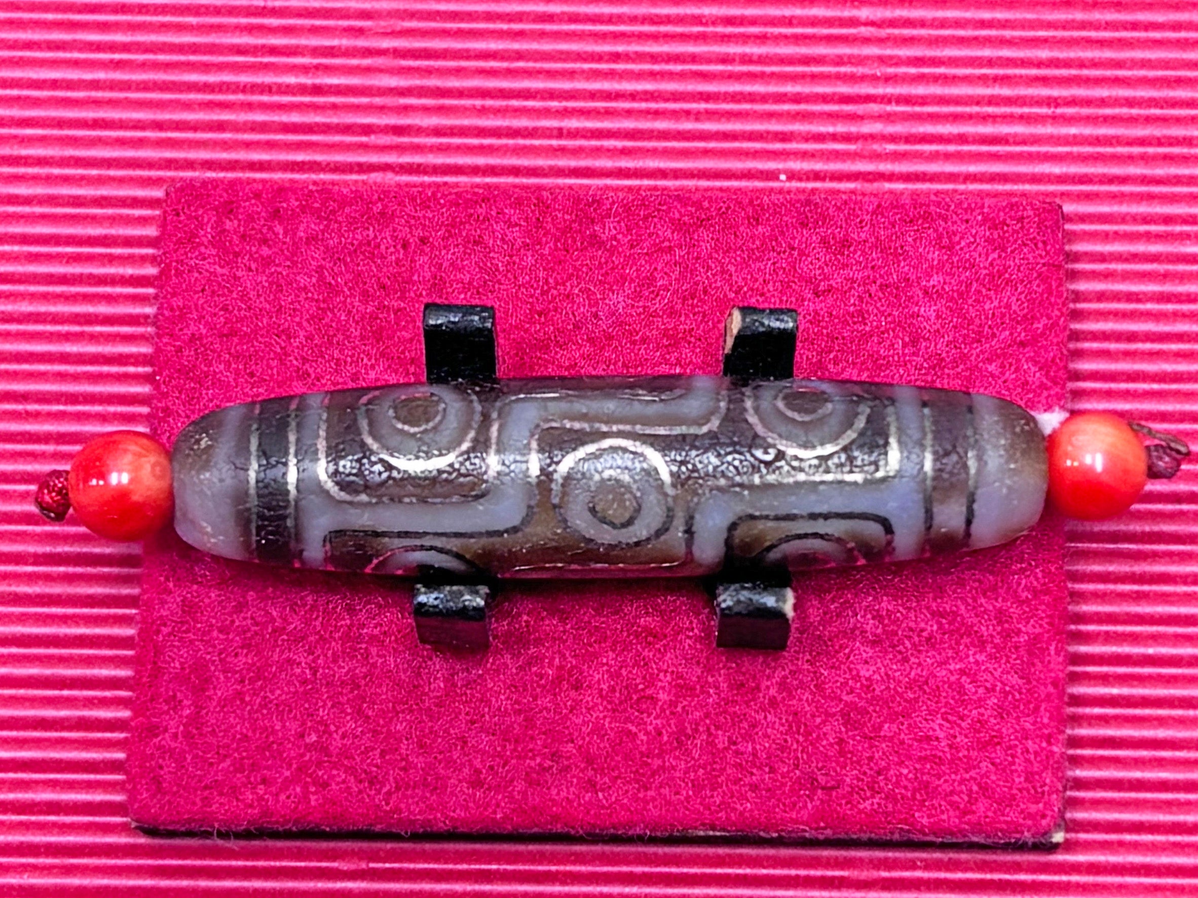 パワーも最上級と言われる極上の一品に銀を装飾した、美しい天珠です。