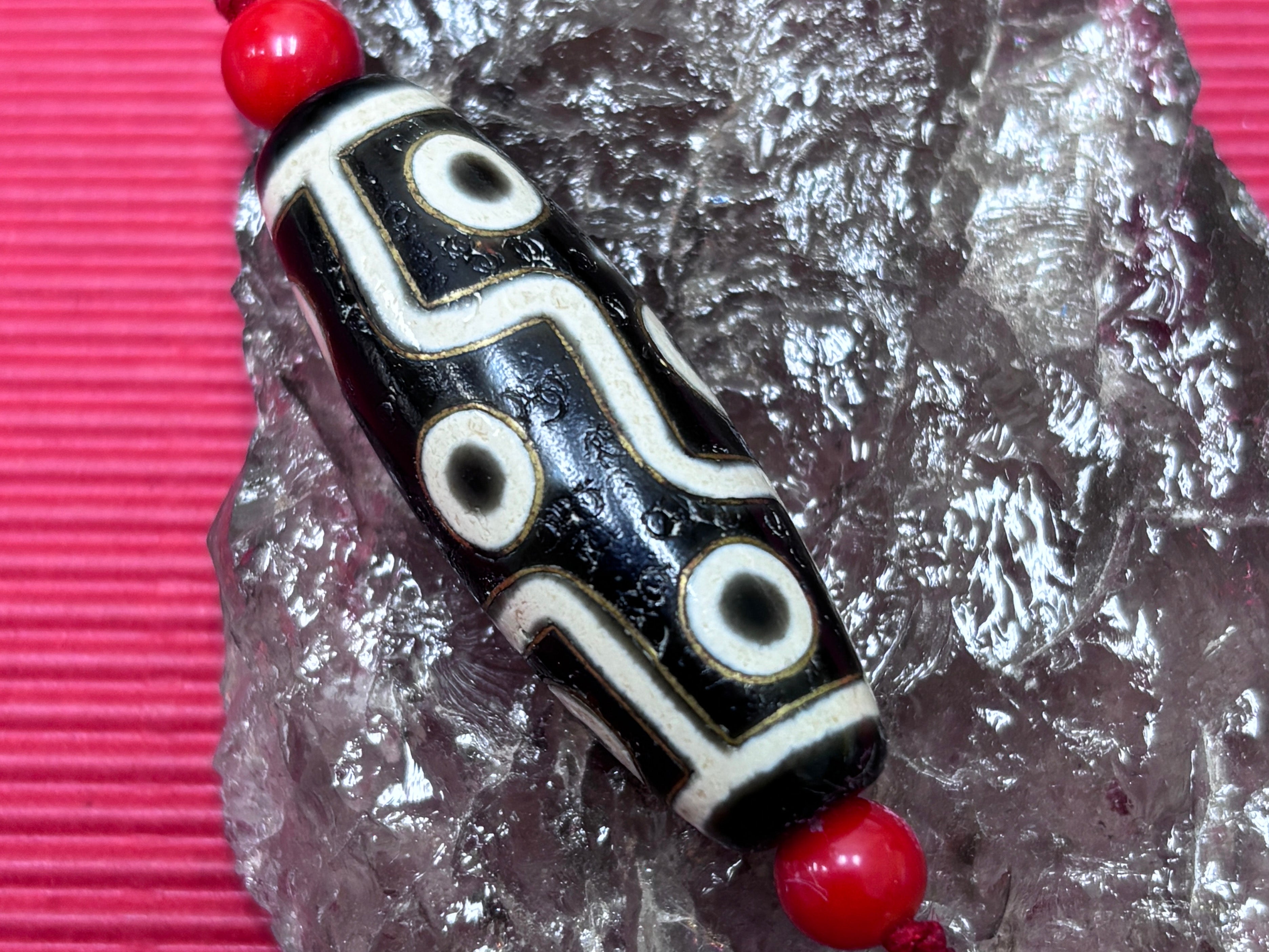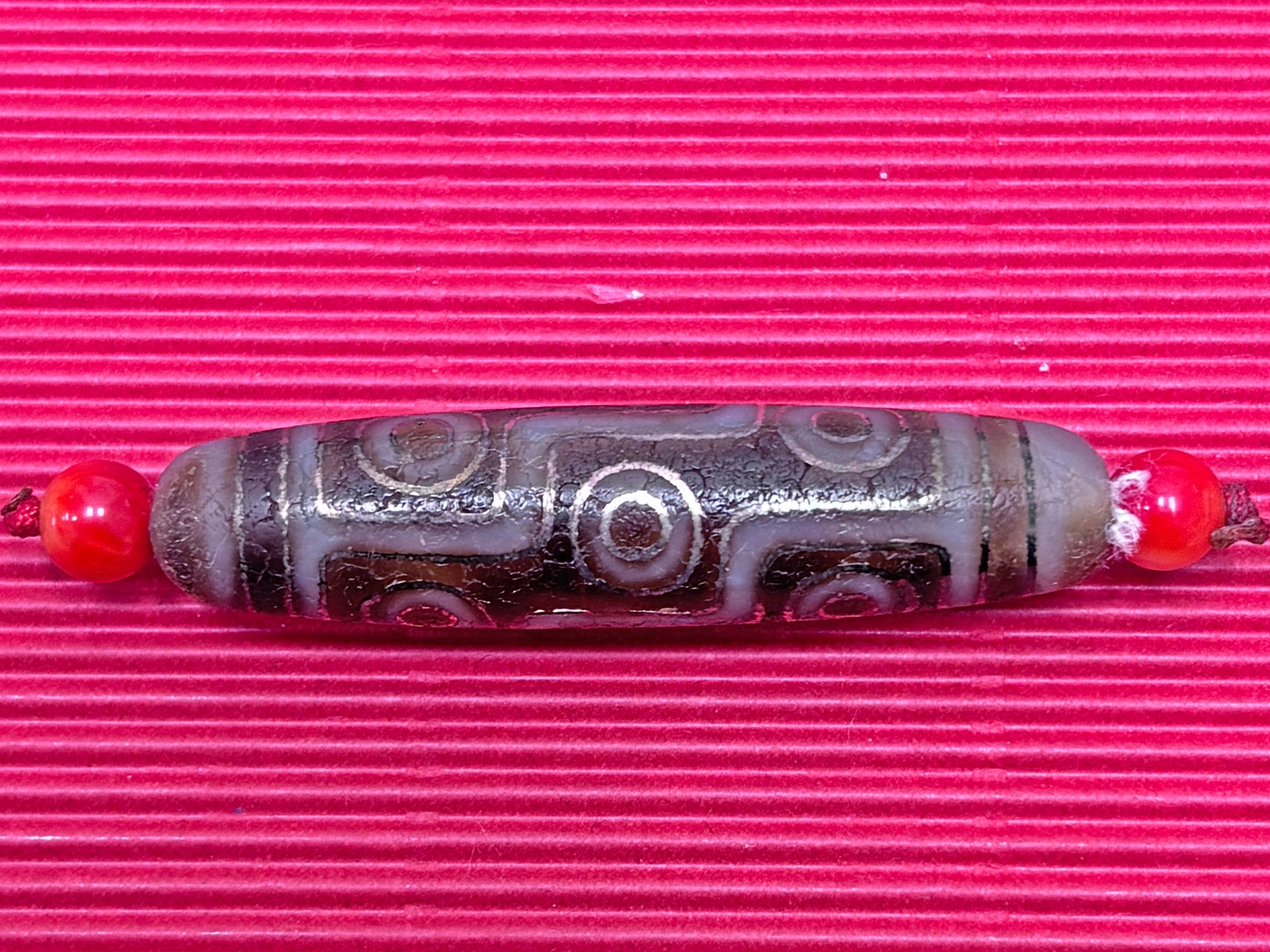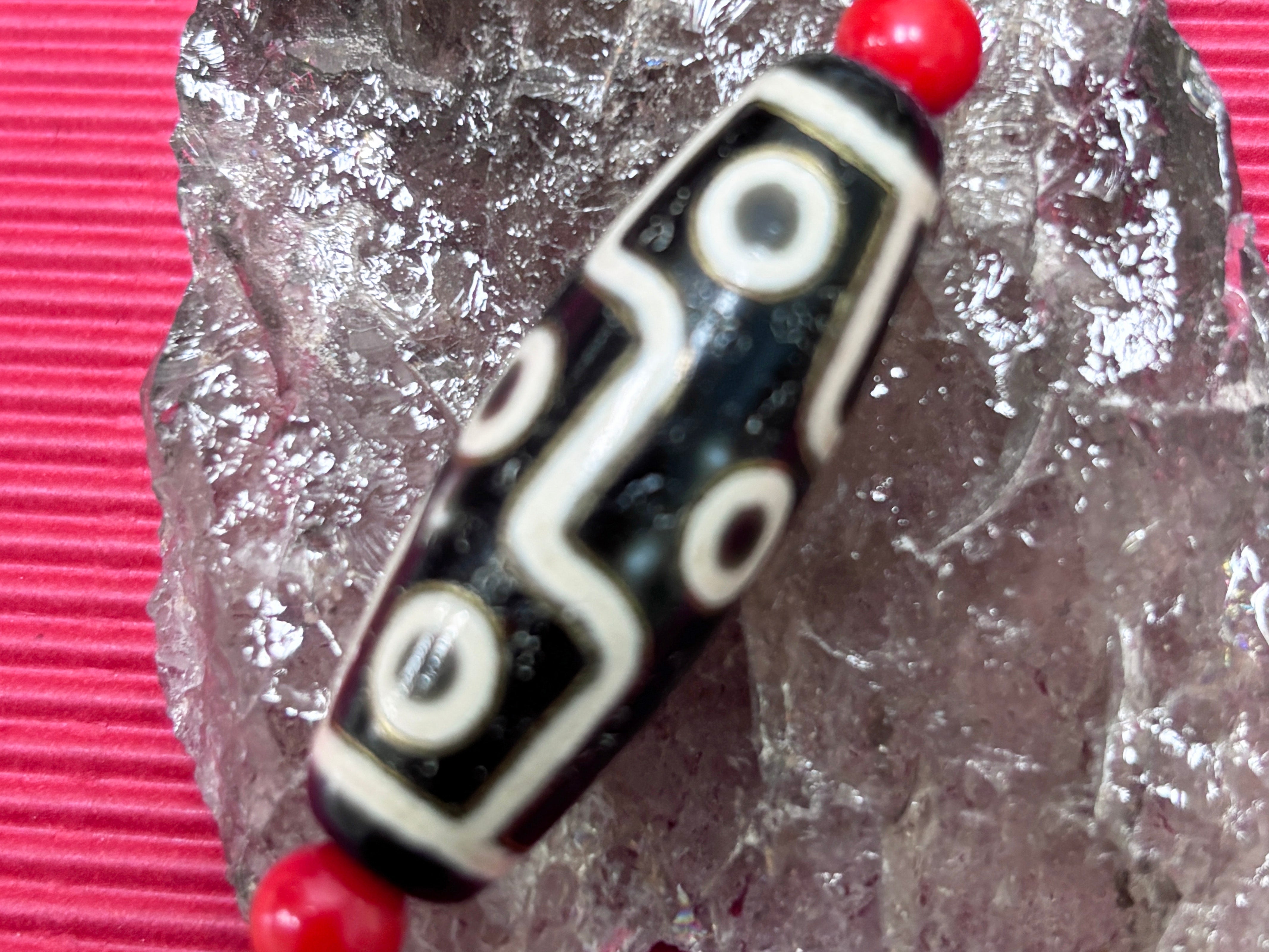 パワーも最上級と言われる極上の一品に銀を装飾した、美しい天珠です。